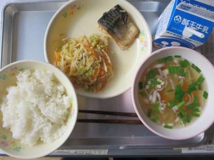 白ご飯、牛乳、サバのみそ煮、春雨サラダ、ワンタンスープ、大福アイスで、6年生のリクエスト給食でした。