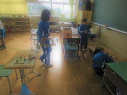 4年生が校庭を歩き回っていました。そして教室でごそごそと活動を始めました。
