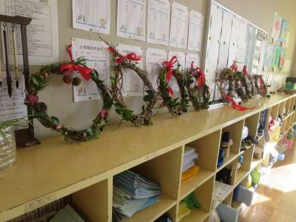 …どうやら冬のリースづくりにチャレンジしていたようです。ヒイラギの葉っぱやプラタナスの実などを上手に組み合わせていました。できあがったらお家のどこに飾るのかな?