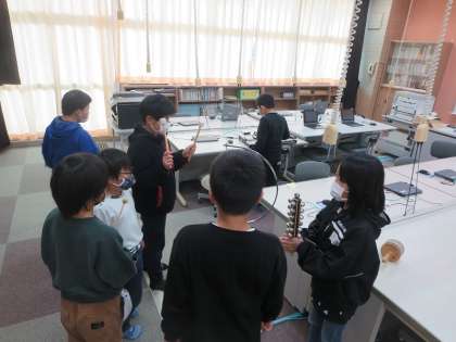 3年生は、音楽づくりにチャレンジ中。打楽器の演奏方法や音の重ね方を試していましたね。
