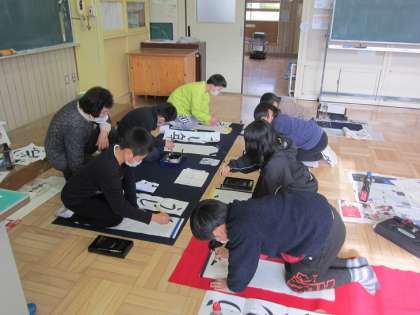 毎年この時期は講師の先生をお招きし、書き初めの学習を学ぶ「書写教室」を実施しています。