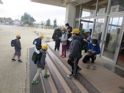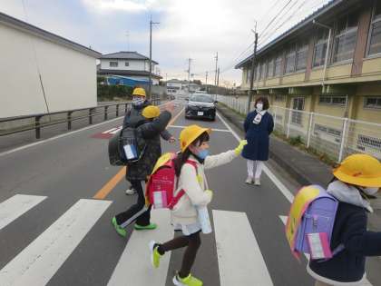 小泉っ子の歩くテンポはよく、7時43分には集団登校完了です。