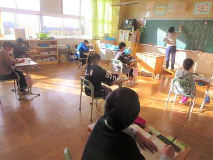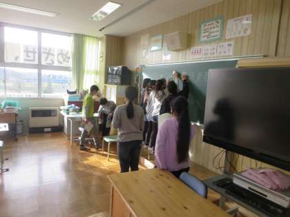 隣の6年教室をのぞいたら、あれ?黒板に何か書いているぞ…。そうでした、音読発表会を始めるのでしたね。(つづく)