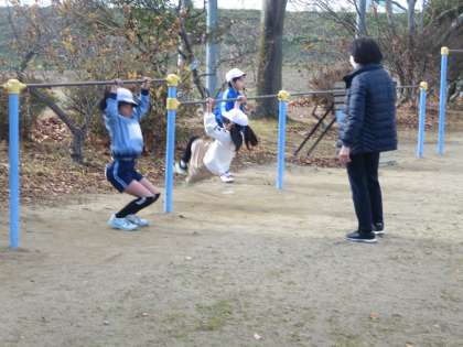 元気に遊ぶ小泉っ子。鉄棒やサッカーなどで楽しんでいました。その中を自由気ままに動き回るのが1年生。校庭のあちらこちらで興味を持ったことに一所懸命なのです。