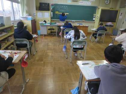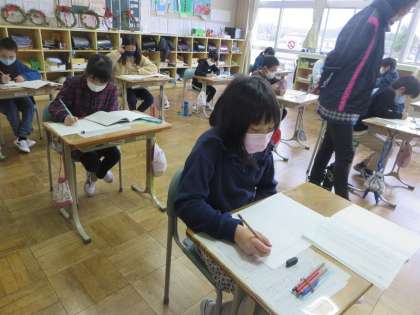 4年国語の授業では、昨日ノートに書いた感想文を原稿用紙に清書していました。ノートの文字を読み、その内容を確かめながらじっくりと書き写す集中力が見事です。