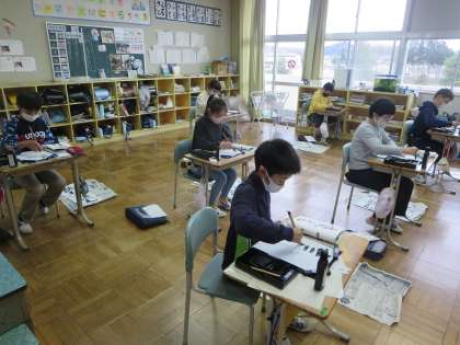 毛筆と硬筆の違いはありますが、できるだけていねいに、納得のいく字を書こうとしているところは一緒です。自分が今やるべきこと全集中!といった一所懸命さがうれしいです。