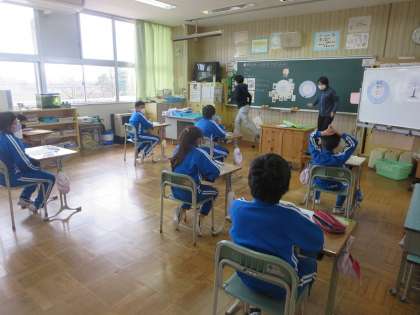 「健康な体をつくるためには、どうしたらよいのか」を考える学習が行われていました。一日の生活を振り返って話し合っていくうちに、生活行動が心の状態に大きく左右されていることに気付いていきました。5年生が結論としたのは「心と毎日の生活はつながっている。自分のペースで進んでいく」でした。心とからだが健康でいられるよう、子どもと共に進んでいきます。