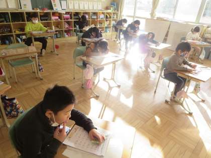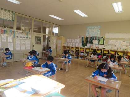 学習内容の振り返りや確かめのためにプリントやドリル、テストに取り組む小泉っ子。できるようになるまで、あきらめず、こつこつと続けていきましょうね!