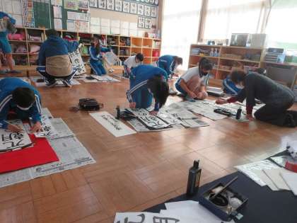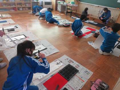 特別非常勤講師の先生をお招きしての書写教室。最終日は6年生です。これまで毎年指導を受けてきたので、基本的な技能や学習の流れをつかんでいる6年生。教えていただいた学年課題のポイントに十分気を配りながら、練習を進めていきました。学習に取り組む態度が素晴らしいと講師の先生からもほめられましたよ。