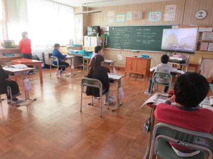 テレビに集中していたのは5年生。社会で放送局の学習をしているのですが、今年は見学に行けないので映像資料を見て学んでいました。番組がどのような流れで制作されていくのかじっくりと見つめていました。