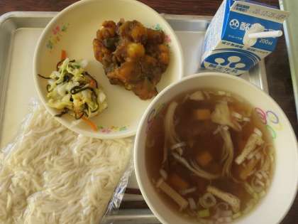 沢煮うどん、牛乳、白玉入り冬至かぼちゃ、の冬至メニューでした。