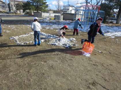 2・3年生は、実はかまくらを作りたかったのです。ほとんどなくなった雪を一所懸命かき集めてくる姿、ちょっぴり感動的でした。今回の経験が、次回に必ずつながっていくことと期待しています。