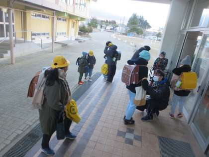 冷たくやや強い風が吹いている中、小泉っ子は集団登校してきました。2学期は今日をふくめて残り4日です。一日一日があたり前ではなく「特別な日」と思って過ごしていきたいです。