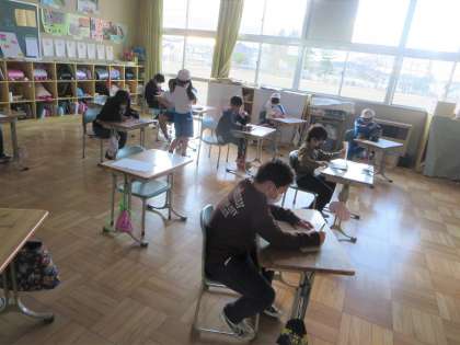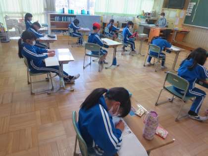 金曜朝の国語タイム。それぞれの学級でショートテストを使って漢字やことばの学習に取り組んでいました。短い時間に集中して行う習慣が身に付いてきたので、冬休みも続けてくれますように…。