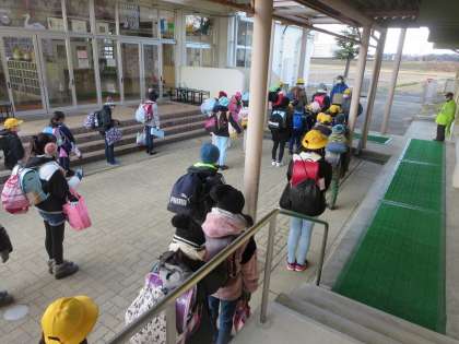 今日は集団下校の日。全員がそろったところで、生徒指導担当より新型コロナウイルス感染予防について話をしました。やはり新しい生活様式の3つの基本「身体的距離の確保」「マスクの着用」「手洗い」を意識して続けることが大切ですね。