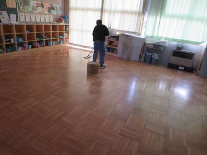 18日(金)の一斉下校後、教室のワックスがけを行いました。
