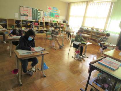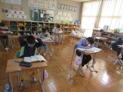 国語の意見文を書いていたのは5年生。頭を抱え込んで悩むこともあったようですが、自分の考えを分かりやすく伝える文が書けそうです。