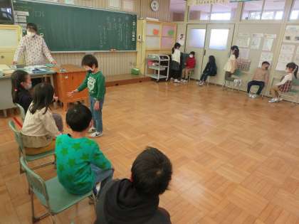 1年生も2学期まとめの集会活動を行っていました。みんなで元気に歌った後は、王さまじゃんけんなどのゲームで盛り上がりました。最後は、2学期楽しかったことをはっきりと発表することができましたね。すてきなまとめの会となりました。