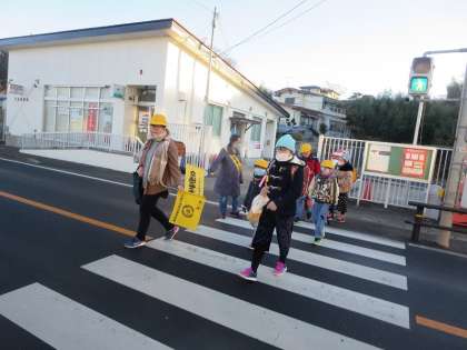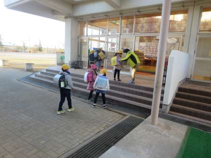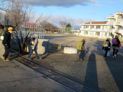 おだやかに晴れました。寒さがやわらぎ、ちょっぴりあたたかさも感じるので、自然と笑顔になれます。小泉っ子は軽快なテンポで集団登校をしてきました。