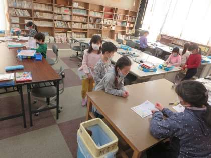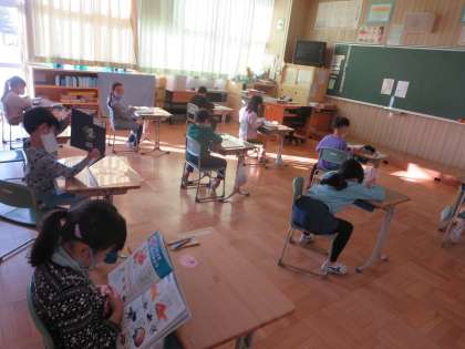 読書タイムは教室で行っていた1年生。そして工事が始まるころ、3階パソコン室へ移動し午前中の授業を行いました。パソコン室には慣れたようで、安心して学習に向かっている姿が見られます。今日もがんばろうね。
