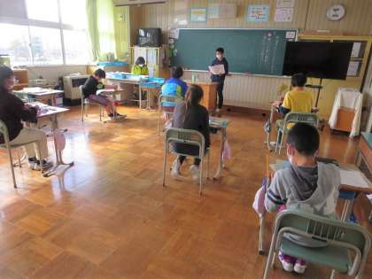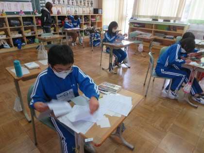 5年生はメディアと自分のかかわりについて書いた意見文を発表し合っていました。考えの根拠や自分の体験をもとにした具体的な事例を示しながら堂々と発表する姿に大きな成長を感じました。