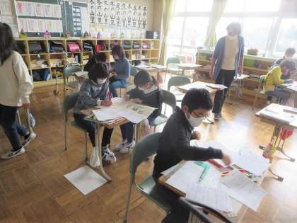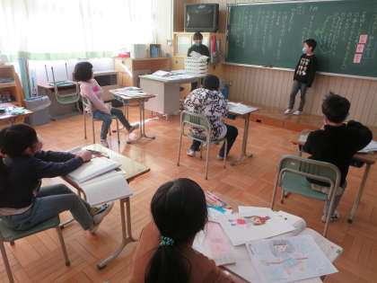 一年間のとびっきりの思い出を伝えようと話し合う2年生、アンケート結果を分かりやすく伝えようと整理する4年生。授業で見かけた一所懸命さは、目的意識をはっきりと持っていることの証ととらえています。大事にしたいのです。