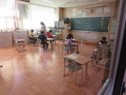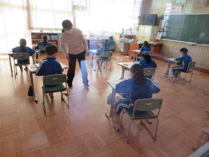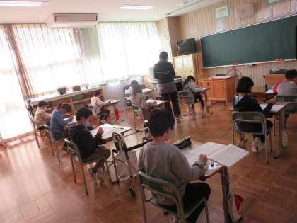令和2年度は国や県の学力調査が中止となりました。そこで、子どもたちの学力状況を測り、その結果の分析を通して今後の指導に役立てるため、全学年で学力テストを行うことにしました。今日は国語、明日は算数です。