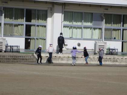 昼休み!でも、寒い!…しかし、1〜3年生は元気です。なわ跳びをしていたかと思えば、いつのまにか追いかけっこがはじまり、そして王様じゃんけんで盛り上がっていたのでした。