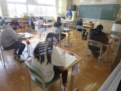 今日の2校時は全校一斉に学力テストを実施しました。ふつうは1枚の用紙の表裏を解いておしまい!となるのですが、冊子になった問題を見るだけでちょっぴり気分がさがってしまいますね。でも、あきらめず投げ出さず最後までチャレンジした小泉っ子でありました。