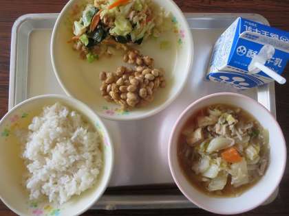 麦ごはん、牛乳、すきやき煮、海藻のあえもの、豆みそでした。