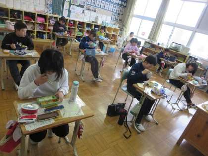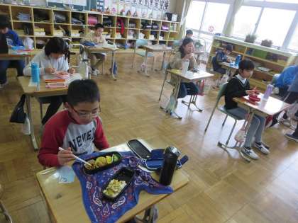 今日は「マイ弁当の日」です。食への関心を高めることが目的ですから、自分のお弁当に何らかの形でかかわることを大切にしています。ですから「切った・焼いた・炊いた・揚げた・混ぜた」などの調理以外にも「メニュー(おかず)を決める」「(家族と一緒に)食材を購入する」「お弁当箱につめる」などにチャレンジした小泉っ子であります。自分がかかわったお弁当だからこそ、おいしそうに味わう姿が見られました。