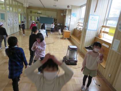 1階ワークスペースが久しぶりににぎわっていました。3年生が中心となって行っていた昔の遊びに、同じ教室の2年生が加わり遊びの輪が広がります。羽子板、こま回し、お手玉、だるま落とし、竹とんぼ…。そうなると「楽しいこと大好き!」な1年生がじっとしているはずもなく、2・3年生の輪にどんどん入っていきます。教えたり教えられたりしながら、笑顔がいっぱいに広がっていったのでした。
