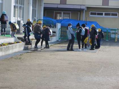 昨日の激しかった雨風はおさまり、日差しが戻ってきました。路面は凍っているところもありますので、足元に気をつけながら小泉っ子元気に登校してきました。