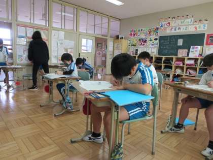 3年生が黙々と取り組んでました。総合的な学習の時間で特に心に残ったことを新聞に表していたのです。育てたり調べたり作ったり、とがんばったことをしっかりと書きましょうね。