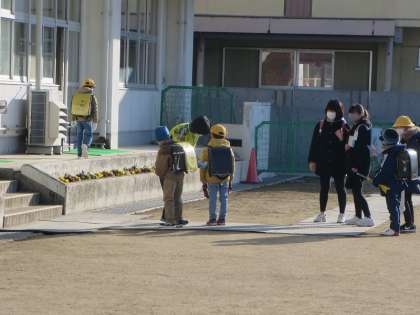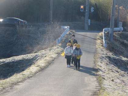 朝7時は氷点下3度。しかし風がなく、強い日差しが降りそそいでいるので寒さを感じません。小泉っ子も元気に登校してきました。