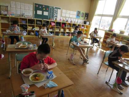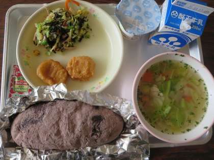 今日は、野菜と鶏肉のエキスが濃厚に溶け合っているスープも好評でしたね。とにかく大満足で大満腹の給食、ごちそうさまでした。
