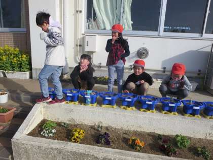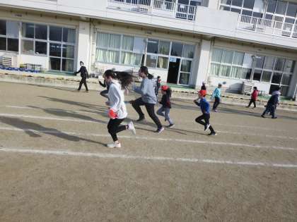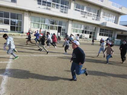 今朝も阿武隈川方面からの風に負けない小泉っ子です。走り隊!という気持ちを強く持っている証拠ですね。そして50m走のラスト数本が大競争となる光景は、見ている者の心も熱くなります。お花を見つめるやわらかなまなざしもすてきなのです。