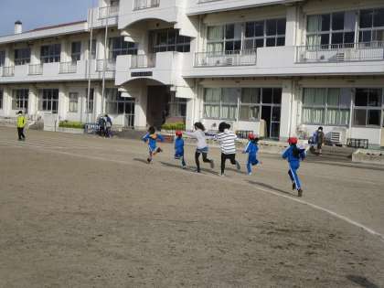 今朝の校庭は3年生が一番乗り。そして、5年生、6年生と走りの輪が広がっていきました。6年生が1年生の様子をうかがいながら併走してくれたので、1年生はいつも以上に意欲を出して走っています。50m走ではたくさんの人と競争したくて、何度もチャレンジする小泉っ子。走ったあとの笑顔が輝いています。