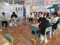 はじめは、「再生可能エネルギー」について、今あるエネルギー資源だけに頼るのではなく、自然界(太陽・風・水など)の物を利用することや再利用できるものに目を向けることなど、映像や掲示から学びました。
