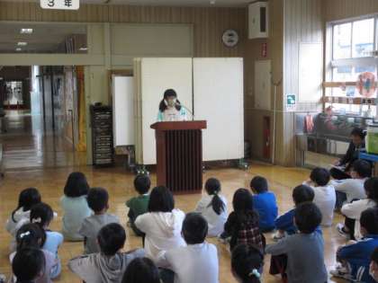 昨日に引き続き、少年の主張コンクールの練習を全校児童の前で行いました。自分の原稿を見ないように心がけながら発表していました。