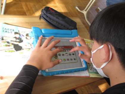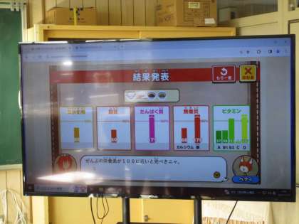 デジタル教材を使って、栄養バランスのとれた献立を考えていました。