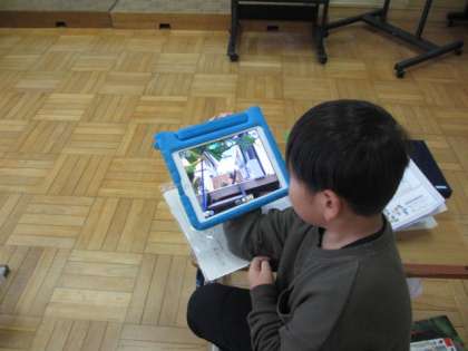 タブレットに保存してある写真や、観察日記などを参考に構想を練っていました。