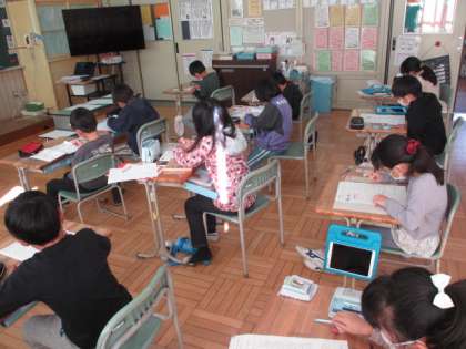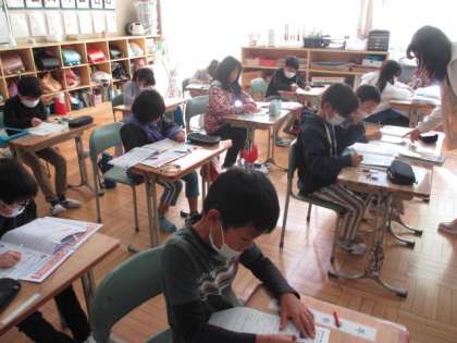 3年生は、算数の練習問題に取り組んでいました。
