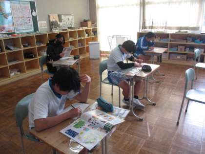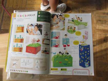 教科書や映像をもとにクランの仕組みや動きを知り、つくりたい動きのあるおもちゃのアイデアスケッチをしていました。