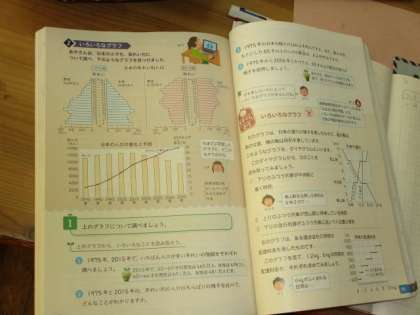 教科書にあるグラフから読み取れることを、話し合っていました。