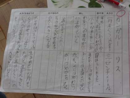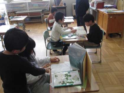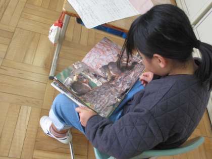 「どうぶつの赤ちゃん」の読み取りが終わり、ワークシートに自分が好きな動物の赤ちゃんについてまとめていました。友だちと協力したり、本を参考にしたりして取り組んでいました。