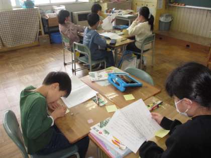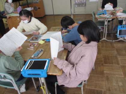 4年生は、友だちが書いた「おすすめの本の紹介文」を読んで、短い感想を書いていました。