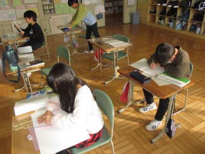 生活している中で、心を動かされたことを詩で表していました。ノートに書いた詩を担任に見せ、助言をもらっていました。詩が完成すると、画用紙に清書していました。