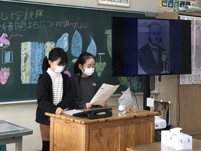 先日の授業参観で、「地いきのくらし探検隊!~安積疏水・安積開拓について調べたよ~」の発表を行いました。グループごとに協力して、調べたことや見学学習で学んだことをロイロノートにまとめ、発表しました。まとめの段階では、イラストを描いたり、写真をつけて説明したり、どうすれば分かりやすく伝えられるかを話し合いながら考えていました。授業参観当日は、少し緊張しながらも、一生懸命に発表することができました。