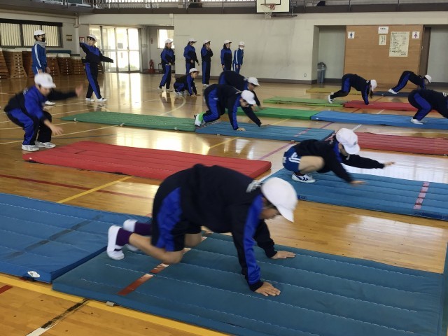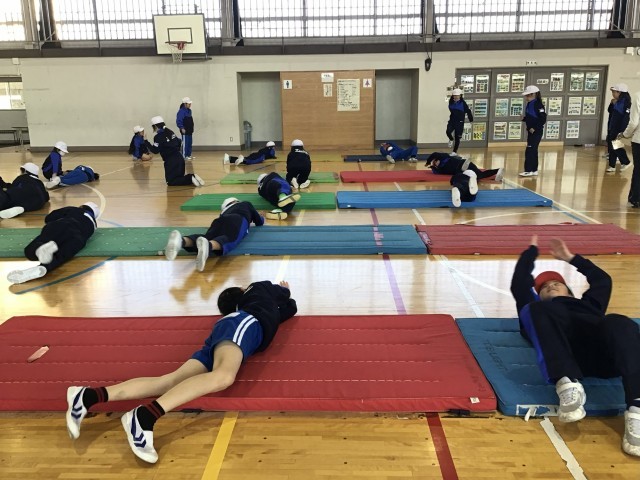 4年生は体育の授業でマット運動に取り組んでいます。3年生のときに比べて、できるようになった技が増え、側転や倒立前転に挑戦している子もいます。今は、2つの技を組み合わせてできるよう、練習しているところです!けがをしないよう、準備運動をしっかり行って取り組んでいきます。